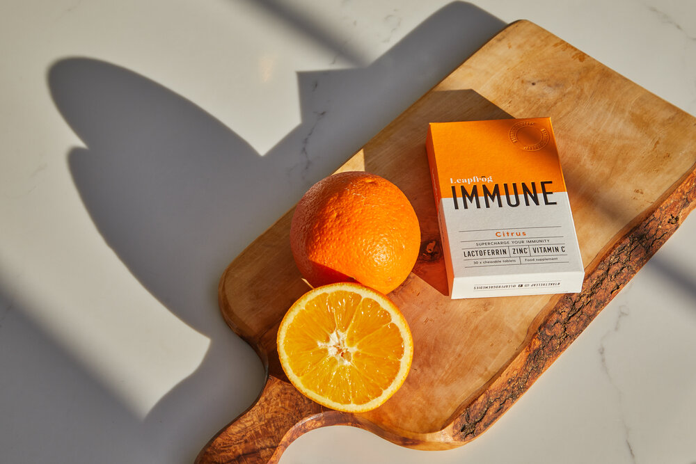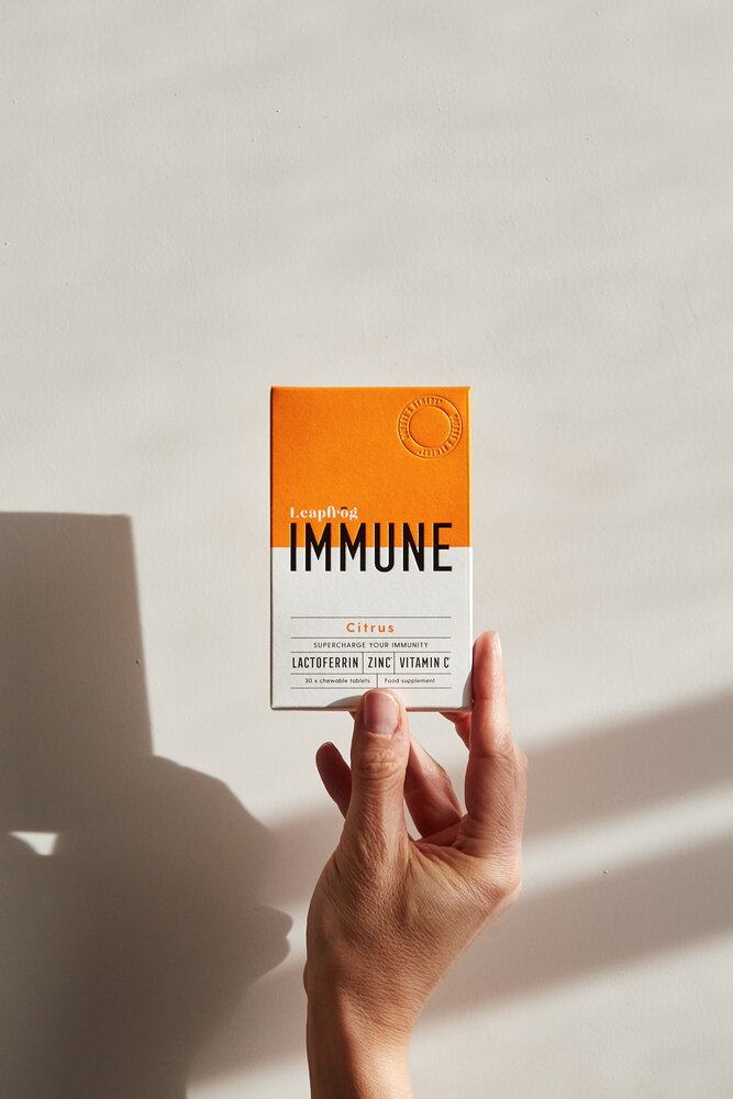 Leapfrog IMMUNE is the UK's 1st chewable supplement with Lactoferrin, Zinc and Vitamin C. Lactoferrin is a protein that we synthesise daily that is known to play a vital role in our defences. It is a key component of mother's milk and Leapfrog's Lactoferrin is sourced from cow's milk.