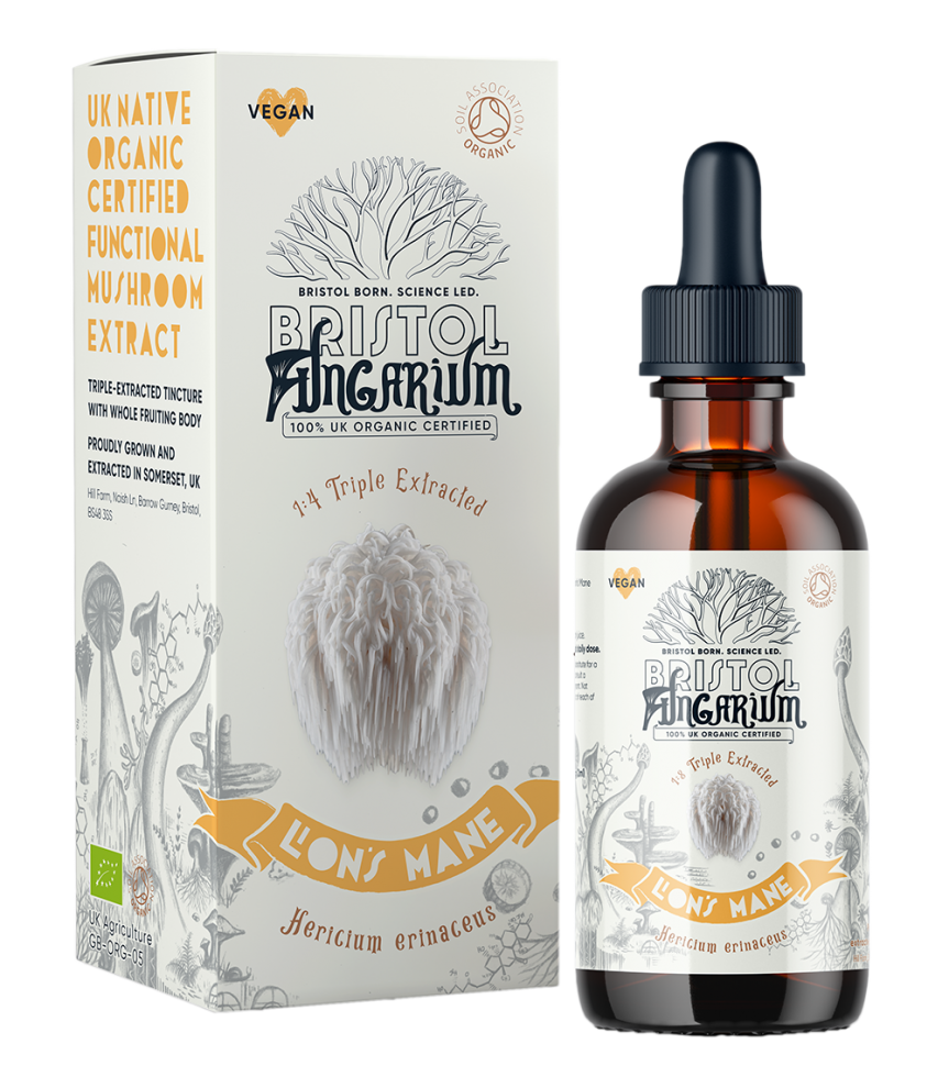 Triple extracted 1:4 Lion's Mane tincture. Foraged, farmed and formulated in Somerset. Potentially ideal for supporting brain function, focus and digestion. UK Native, Sustainably Grown in the UK & 100% UK Organic Certified.