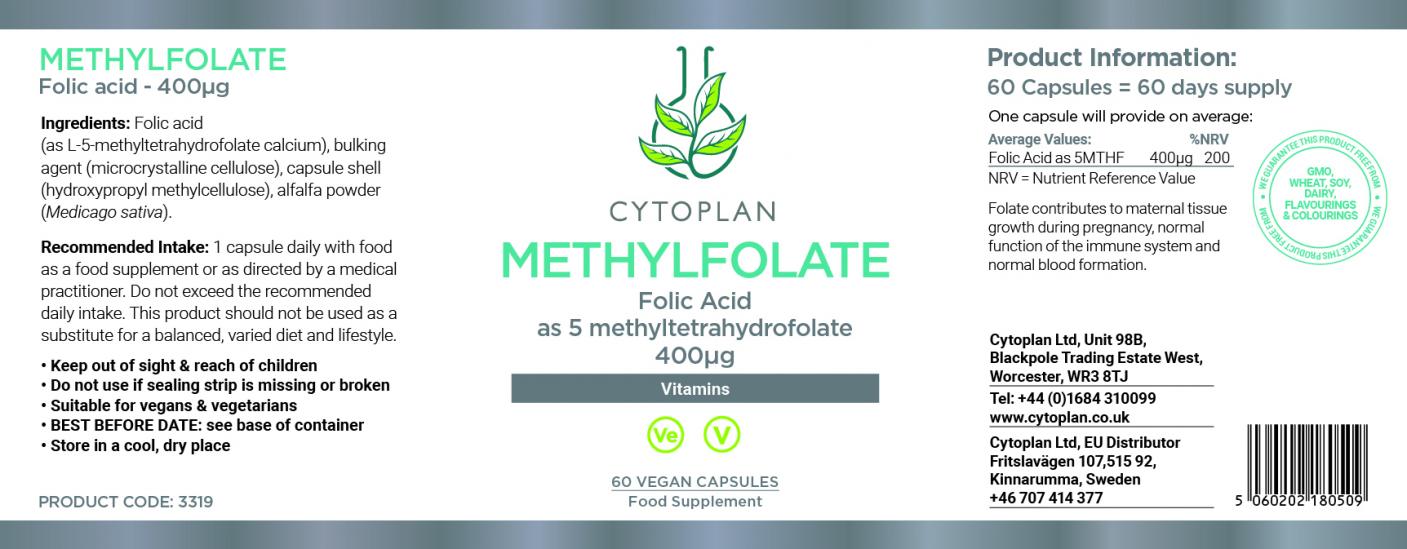 This Methylfolate supplement contains 400ug of methylfolate per capsule in a base of alfalfa. Methylfolate (5MTHF) is a stable, safe and bio-effective form of folate.
