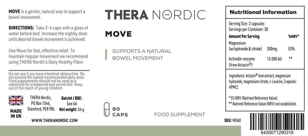 Move is a natural and gentle way to effectively detox the gut and stimulate healthy bowel movements. Move first softens the bowel contents and then stimulates natural movement through a combination of magnesium and enzymes from patented Actazin Kiwi Extract.