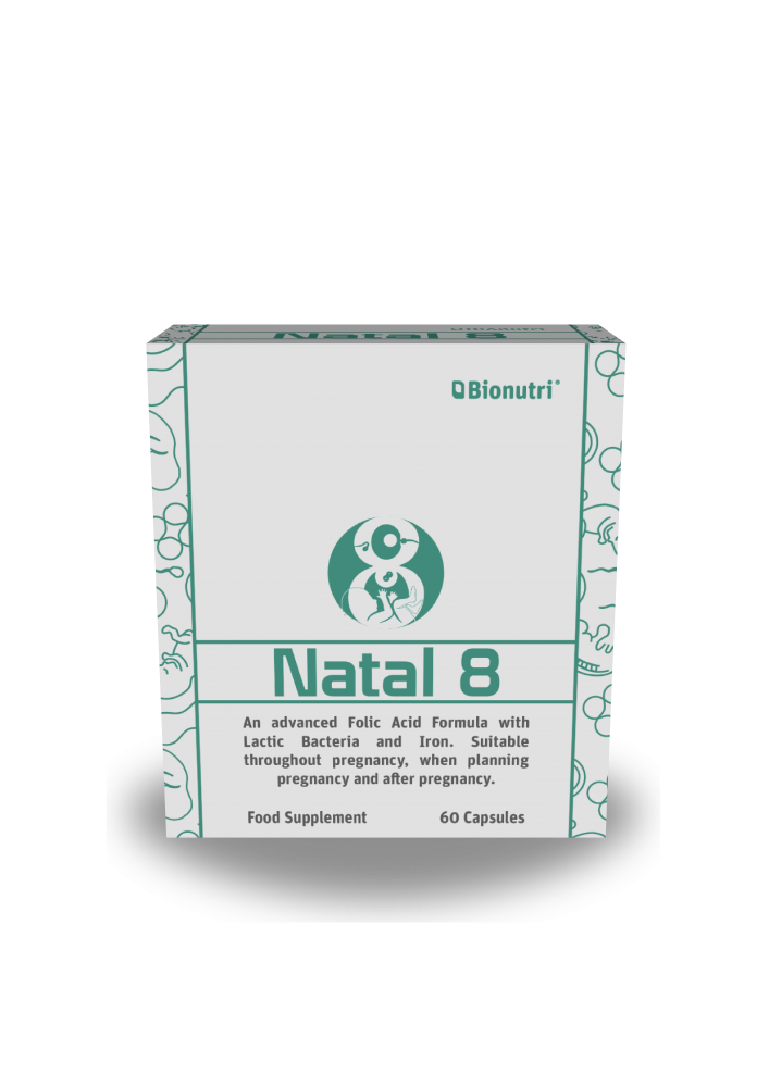 Natal 8 is an advanced folic acid formula with lactic bacteria and specific additional vitamin and mineral support in a single one-a-day capsule that is suitable for vegetarians and vegans.