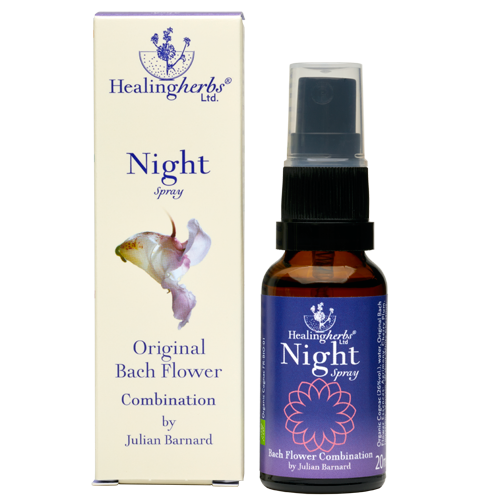 Night spray enables you to relax after a stressful day and get a good nights sleep. A dilute and ready to use formulation made from Healingherbs Bach flower essence stock: Agrimony, Cherry Plum, Impatiens, Vervain, Walnut and White Chestnut.