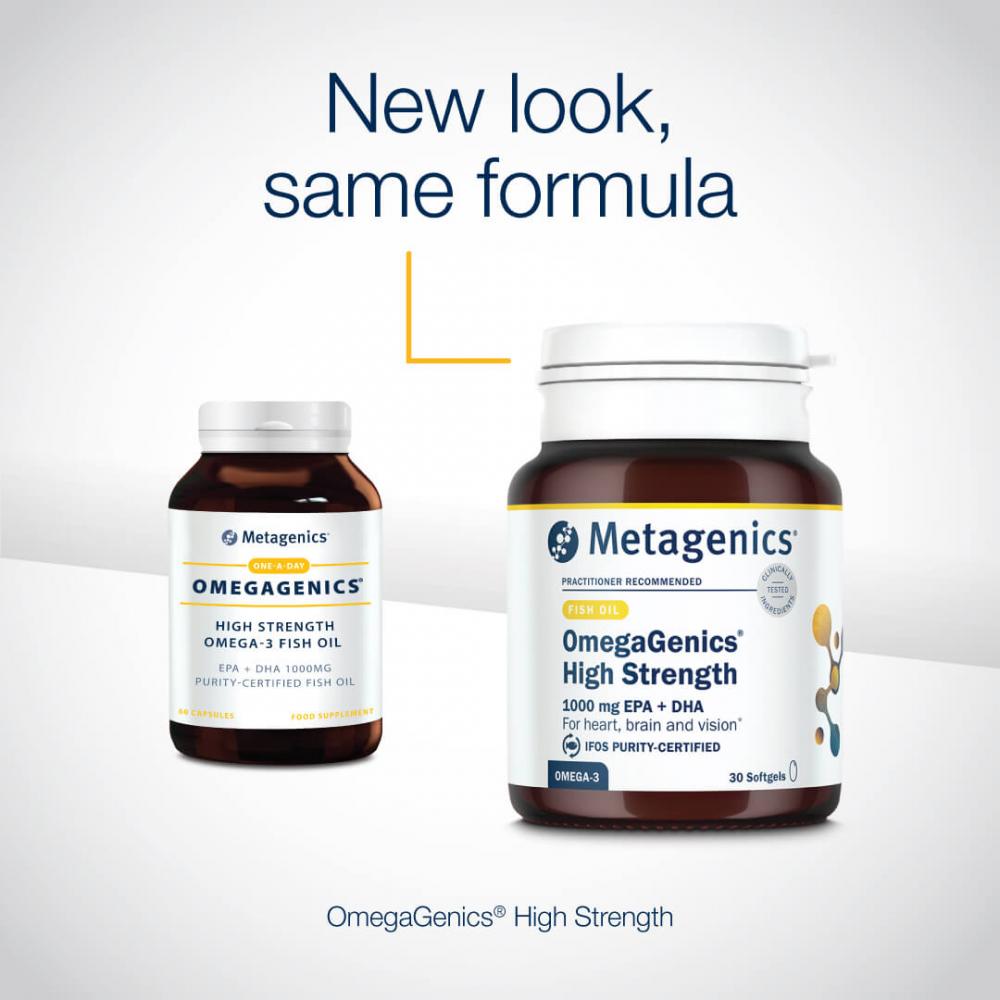 A concentrated, purified source of omega-3 fatty acids in triglyceride form. Each one-a-day capsule provides 1000mg EPA + DHA, making it easy to take a high strength dose. OmegaGenicsĀ® High Strength is certified for its purity, freshness and strength through IFOS (International Fish Oil Standards).