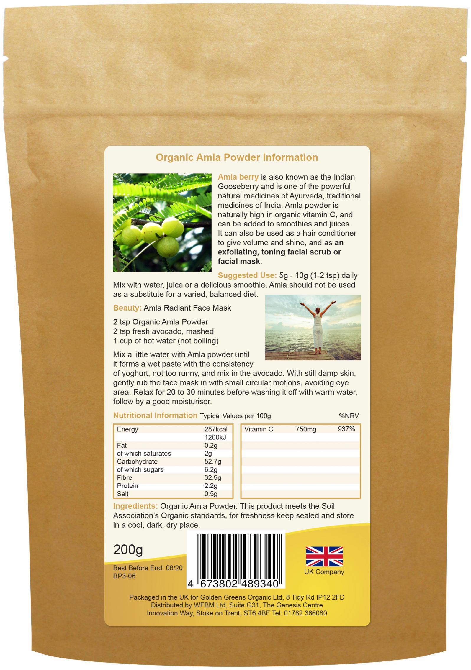 Also known as the Indian Gooseberry, amla is one of the medicines of Ayurveda, the traditional medicine of India. Amla Powder is naturally high in organic Vitamin C and can be added to smoothies and juices. It can also be used as a hair conditioner to give volume and shine.