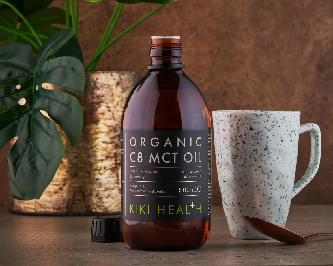 Experience purity with Kiki Health's premium organic MCT oil, made from 100% non-GMO coconuts and containing at least 96% caprylic acid (C8) MCTs. Flavourless and odourless, it blends seamlessly into any drink or recipe. Perfect for ketogenic and low-carb diets.