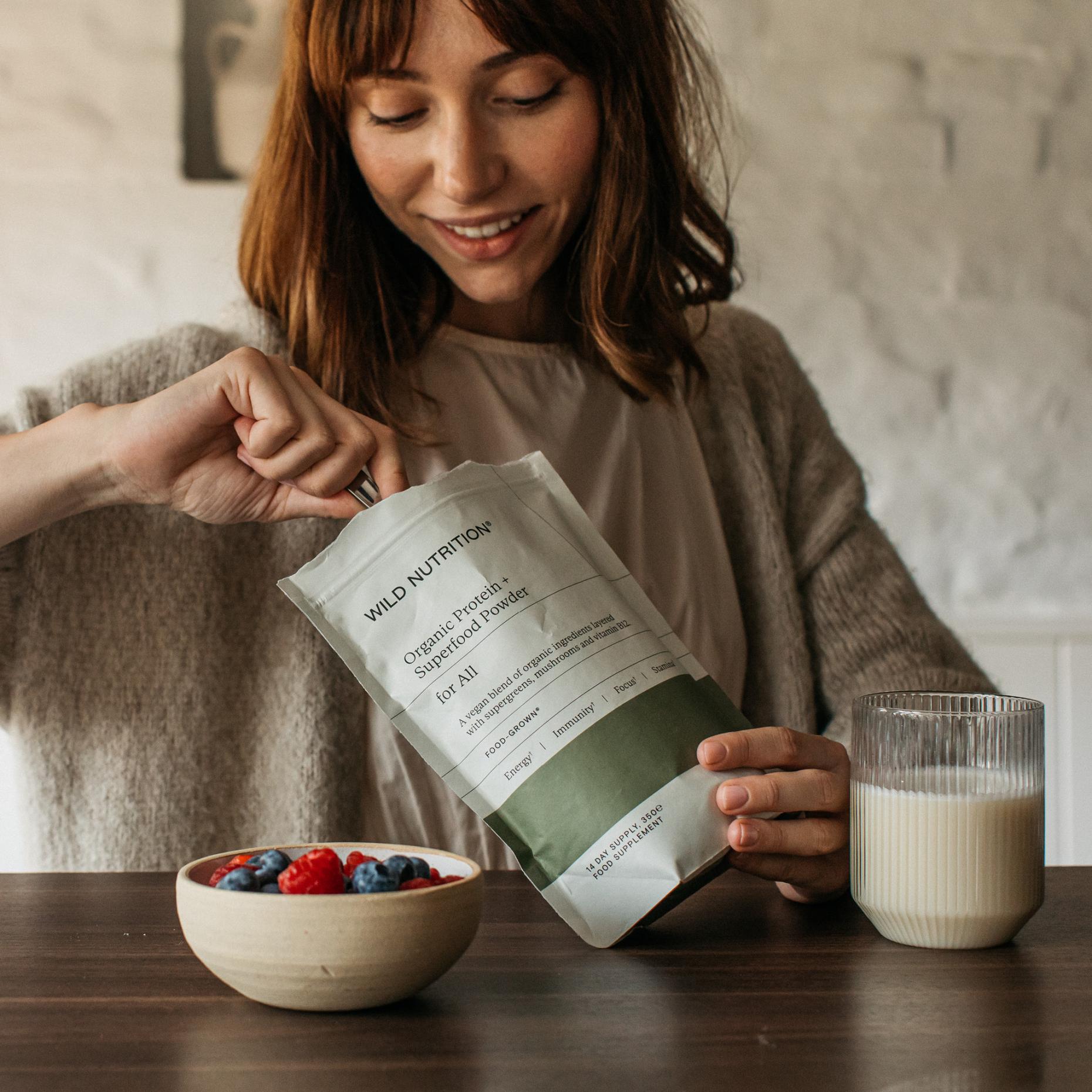 Certified organic, Wild Nutrition's delicious blend of vegan protein, super greens and mushrooms works alongside vitamin B12 to support energy, immunity and focus.