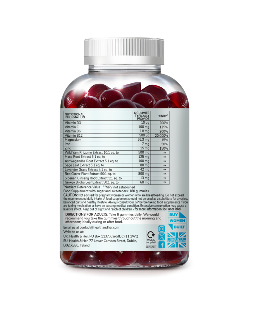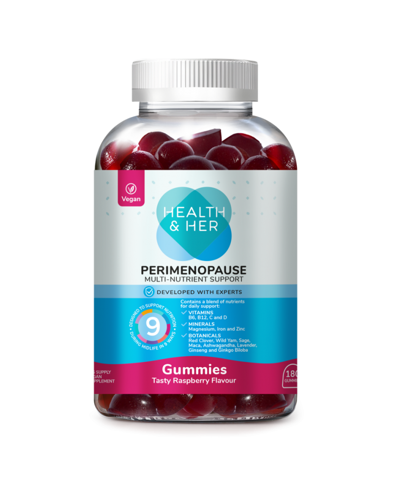 With the same blend as Health & Her’s perimenopause capsules, these delicious raspberry flavoured gummies combine vitamins, minerals and botanicals including red clover, wild yam, ashwagandha, maca root and more. Vegan and gluten-free with no added preservatives or artificial colours.