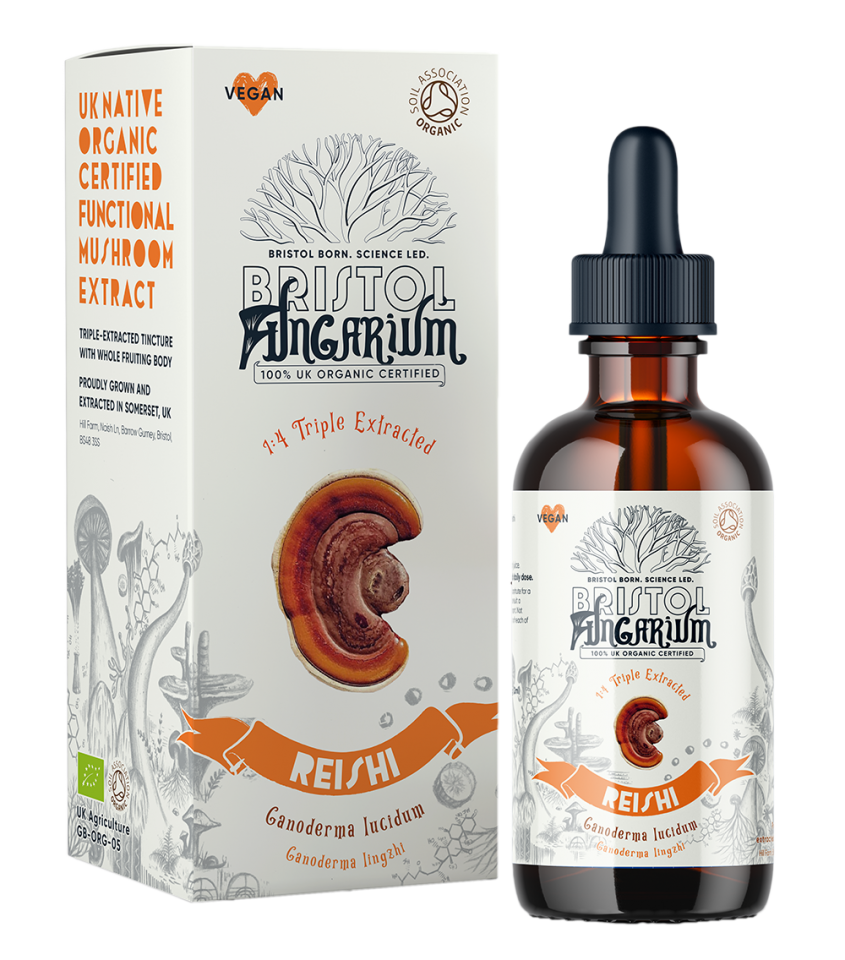 Triple extracted 1:4 Reishi tincture. Foraged, farmed and formulated in Somerset. Potentially ideal for supporting rest and calming both the body & mind. UK Native, Sustainably Grown in the UK & 100% UK Organic Certified.