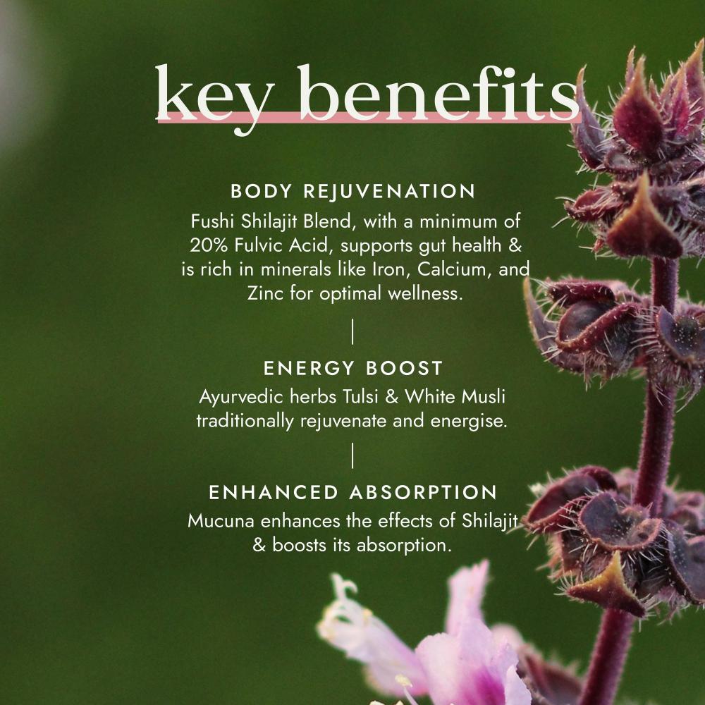 This Shilajit blend with added Tulsi, Kapikachhu and White Musli, to further potentiate the effects of Shilajit and encourage its absorption.