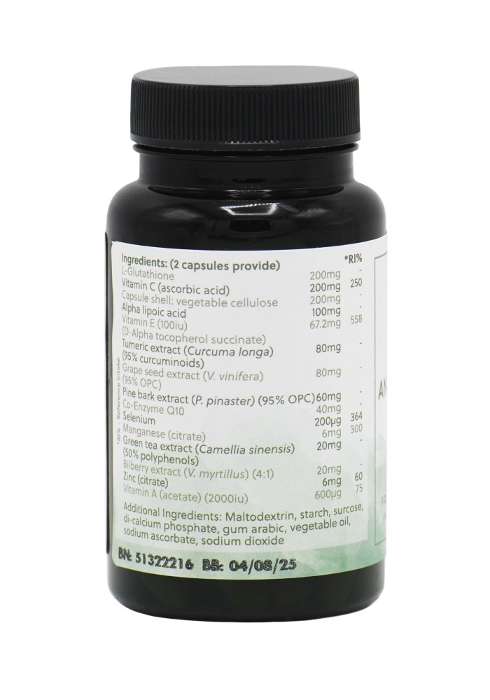 Super Antioxidant Plus includes grape seed, turmeric, pine bark, CoQ10, glutathione, alpha lipoic acid, vitamin C, vitamin E, selenium and zinc. Some of these nutrients contribute to the protection of cells from oxidative stress, support the immune system, and help reduce tiredness and fatigue.