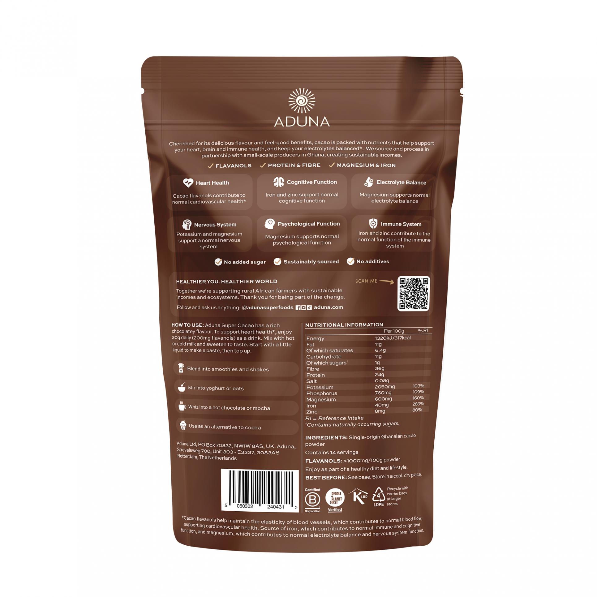 Full-bodied, flavanol-rich cacao to support heart health, mood and digestion. A nutrient-rich upgrade for breakfast or baking.