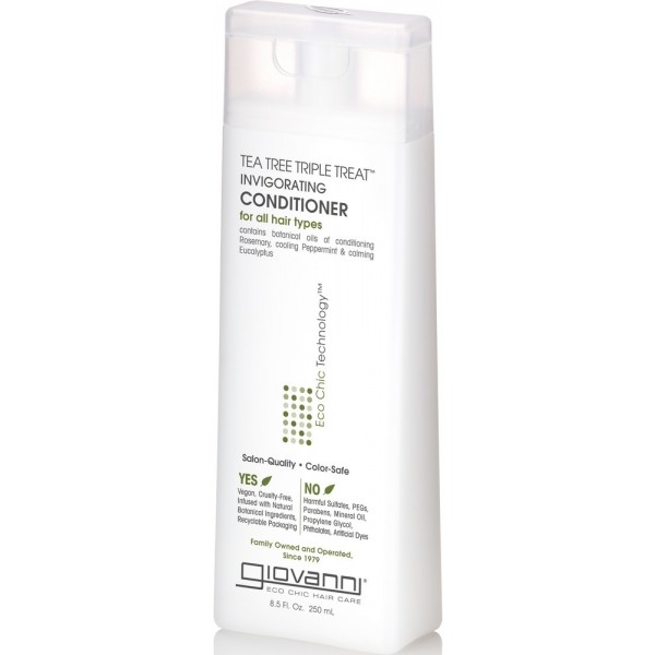Tea Tree Triple Treat Conditioner contains botanical oils of rosemary, peppermint and eucalyptus, to moisturize, smooth and detangle.