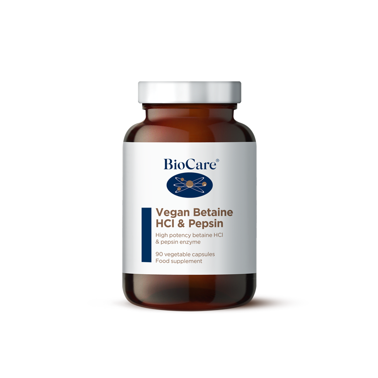 Vegan Betaine HCl & Pepsin is a high potency combination of betaine hydrochloride (HCl) and protein-digesting pepsin enzyme.