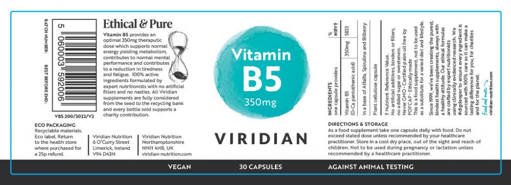 Vitamin B5 (pantothenic acid) contributes to normal mental performance and a reduction in tiredness and fatigue. Vitamin B5 also contributes to the normal synthesis and metabolism of steroid hormones, vitamin D and some neurotransmitters.