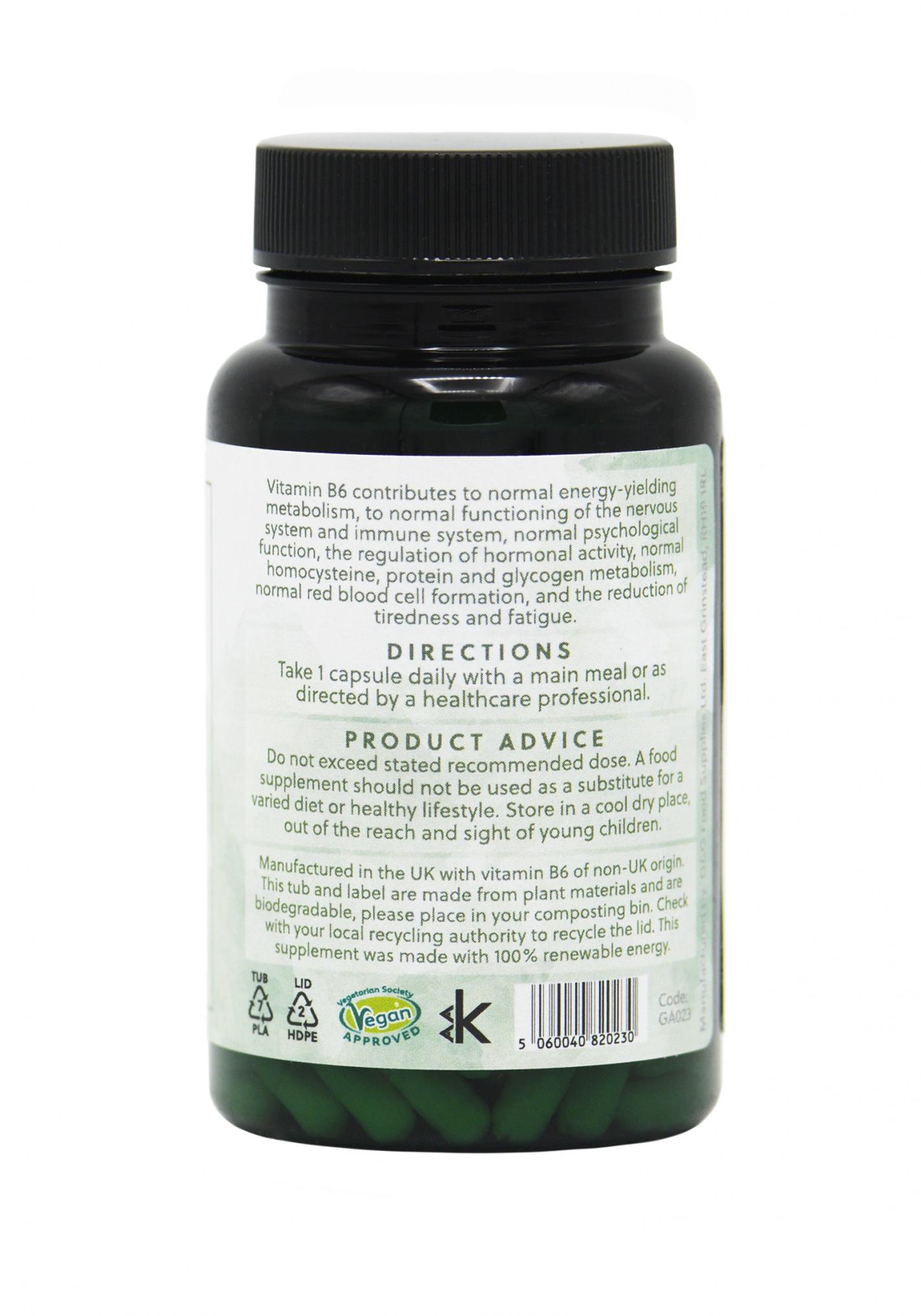 Vitamin B6 contributes to normal homocysteine metabolism; to the regulation of hormonal activity; to normal cysteine synthesis and to normal protein and glycogen metabolism. G&G's Vitamin B6 is suitable for vegetarians and vegans. It is also approved kosher and does not contain any allergens.