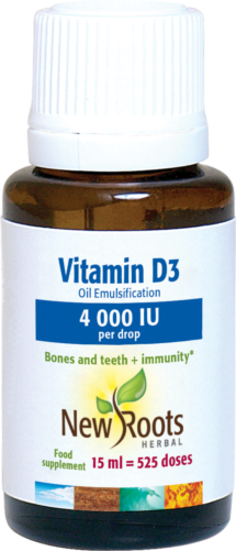A food supplement consisting of Vitamin D3 (cholecalciferol) containing 100 mcg (4000 IU) per drop. Vitamin D contributes to the maintenance of normal bones, muscle function and teeth, and to the normal function of the immune system.