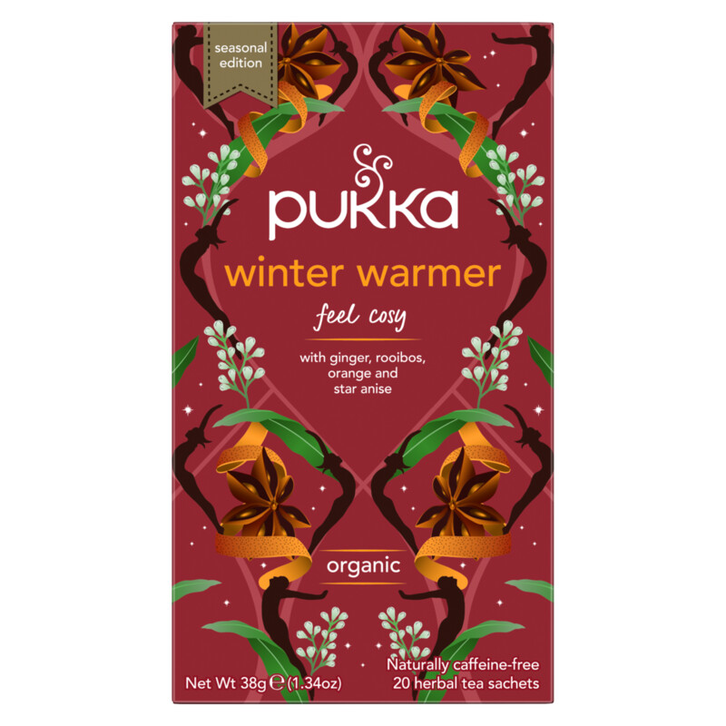 Wrap yourself up in an organic swirl of warmth. Golden ginger, sweet orange with the caffeine free embrace of fair rooibos and star anise for a true herbal glow.