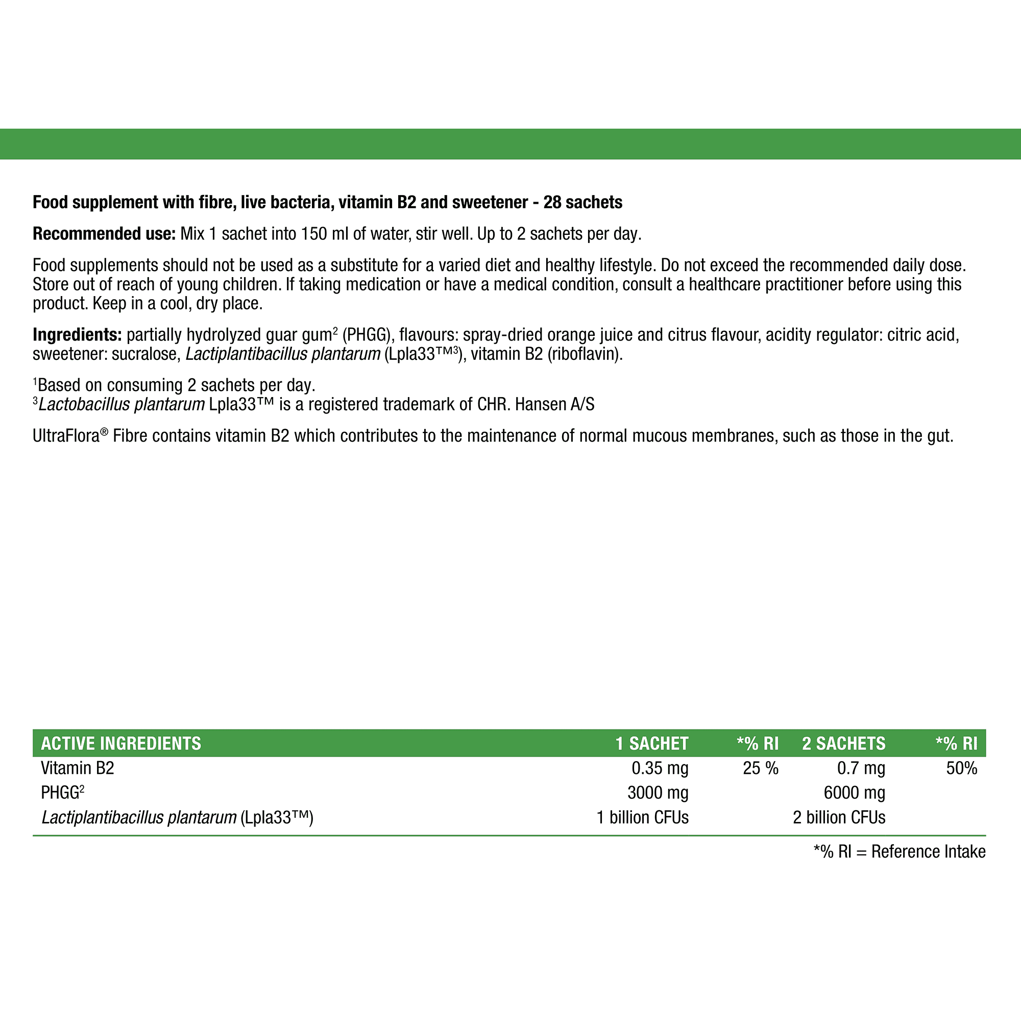 UltraFlora Fibre is a 3-in-1, prebiotic, live bacteria and fibre blend scientifically formulated to aid bowel regularity and gut health. It provides PHGG (Partially Hydrolyzed Guar Gum) a natural source of gentle fibre, which has been shown to help improve bowel function, also acting as a prebiotic.
